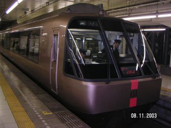 Odakyū 10000 series HiSE (High-decker/High-grade/High-level Super Express) in Odawara vor der Weiterfahrt nach Shinjuku. Dieser Limited Express der Odakyu-Gesellschaft, "Romancecar" genannt, verbindet Tokyo (genauer gesagt: Shinjuku) mit dem nahegelegenen Hakone-Nationalpark. Jens Hardt