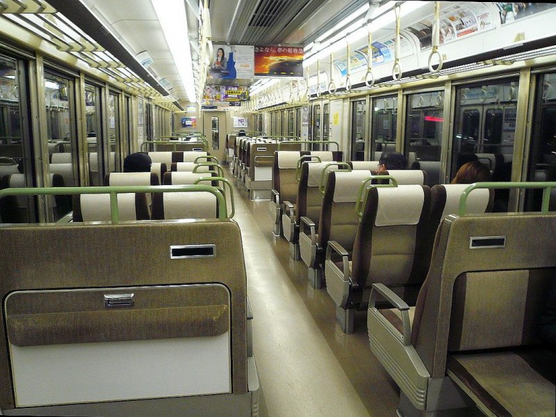 In einem Series 1000 Zug der Odakyu Bahn von Odawara nach Hakone-Yumoto. Diese Züge der privaten Odakyu Gesellschaft werden vor allem im Pendlerverkehr zwischen Odawara und Shinjuku eingesetzt. Jens Hardt