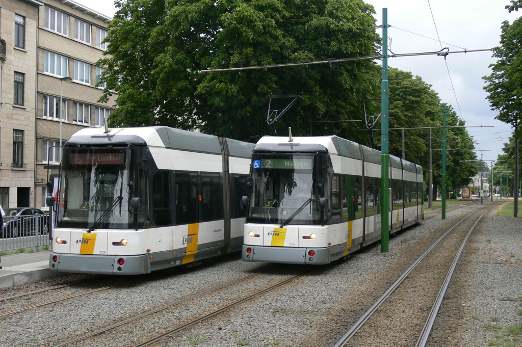 Hermelijn 7219 und 7243 von DE LIJN Antwerpen, aufgenommen 10/07/2009 am Haltestelle Olympiade