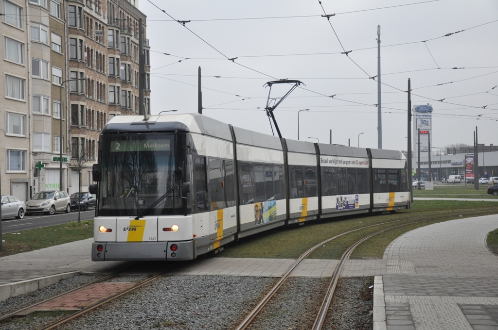 Hermelijn 7241 von DE LIJN Antwerpen, aufgenommen 17/02/2013 am Haltestelle Olympiade