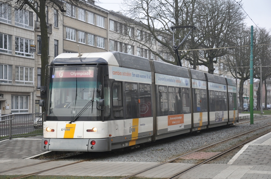 Hermelijn 7261 von DE LIJN Antwerpen, aufgenommen 17/02/2013 am Haltestelle Olympiade