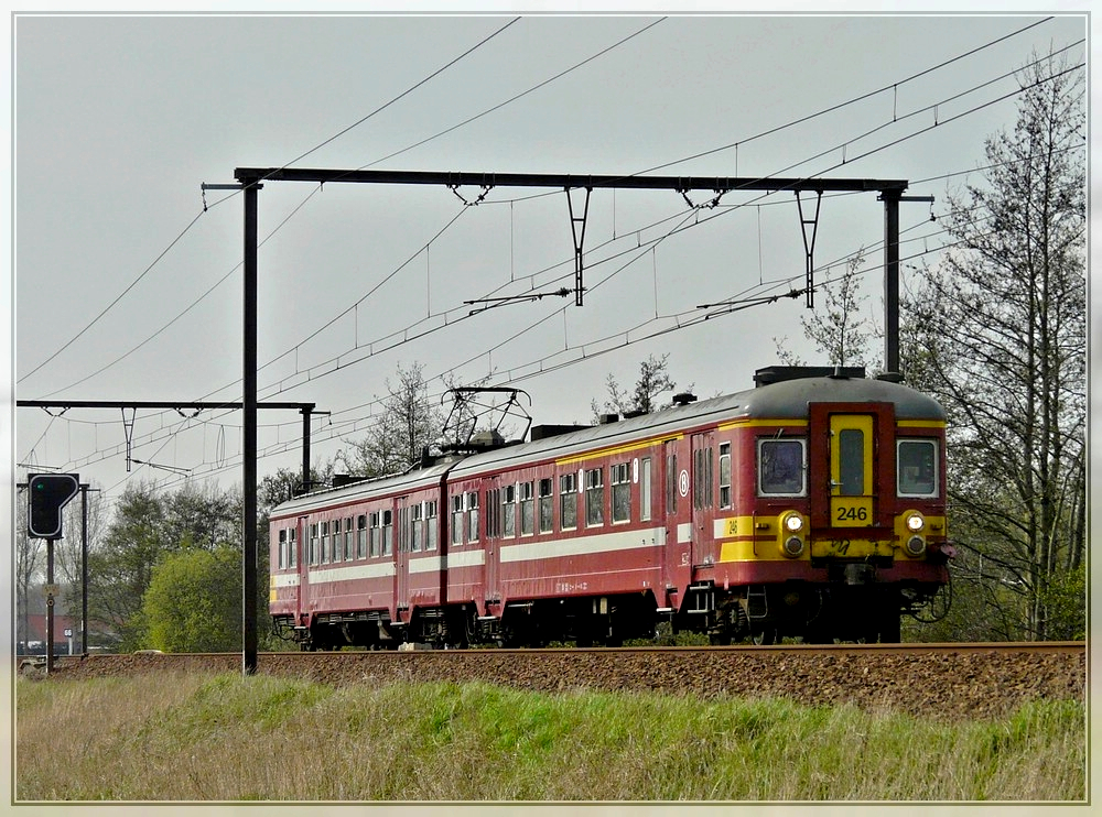 Eine Doppeleinheit der Série 41 kommt am 10.04.09 aus Gent Sint Pieters und fährt in Richtung Brügge vorbei an der schönen Kirche von Hansbeke. (Jeanny) De Rond Hans und Jeanny