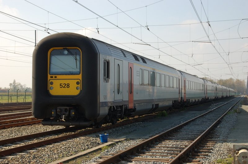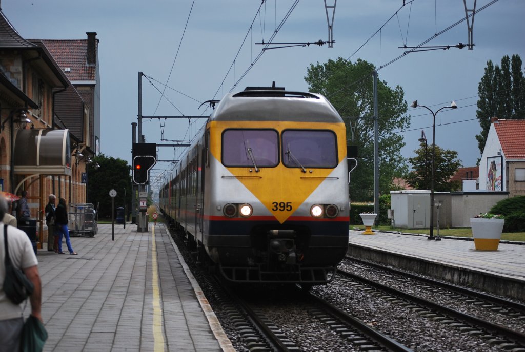 Günstige Bahnsteiganlage im Bhf De Panne, wo Straßenbahn (Kusttram) und Bahn (IR-i nach Brüssel und Landen) Anschluss miteinander haben. Juli 2011. Philippe Godart