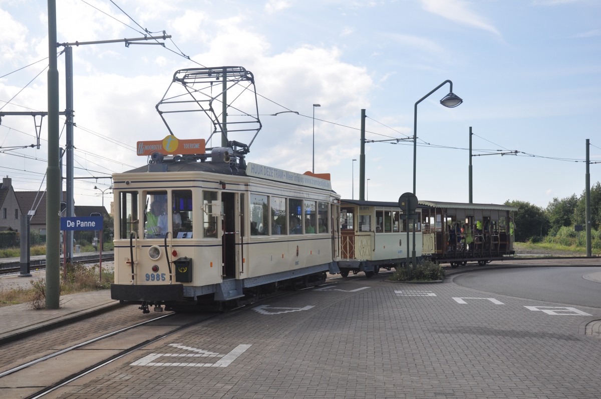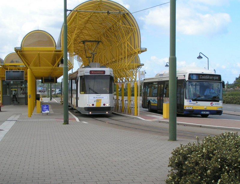 Tramwagen 6045 an der Endhaltestelle De Panne nahe der französischen Grenze. Nach einer kurzen Rast geht die Fahrt an der Küste entlang bis nach Knokke-Heist zurück. 12.09.04 De Rond Hans und Jeanny