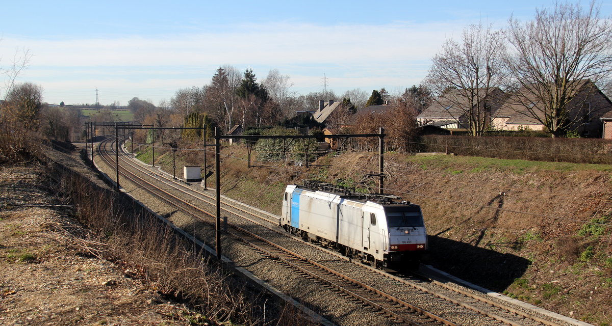 186 453-7 von Lineas/Railpool kommt als Lokzug aus Antwerpen(B) nach Aachen-West(D) und kommt aus Richtung Vise(B) und fährt durch Berneau(B) in Richtung Montzen(B),Aachen-West(D). Aufgenommen von Berneau(B).