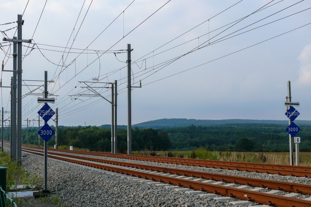 Diese Aufnnahme vom 11/08/2009 zeigt die Trennstelle (Wechsel von 25000 auf 3000 kv), wo die neue Hochgeschwindigkeitsstrecke Lüttich - deutsche Grenze bei Hergenrath auf die alte Wesertallinie trifft.