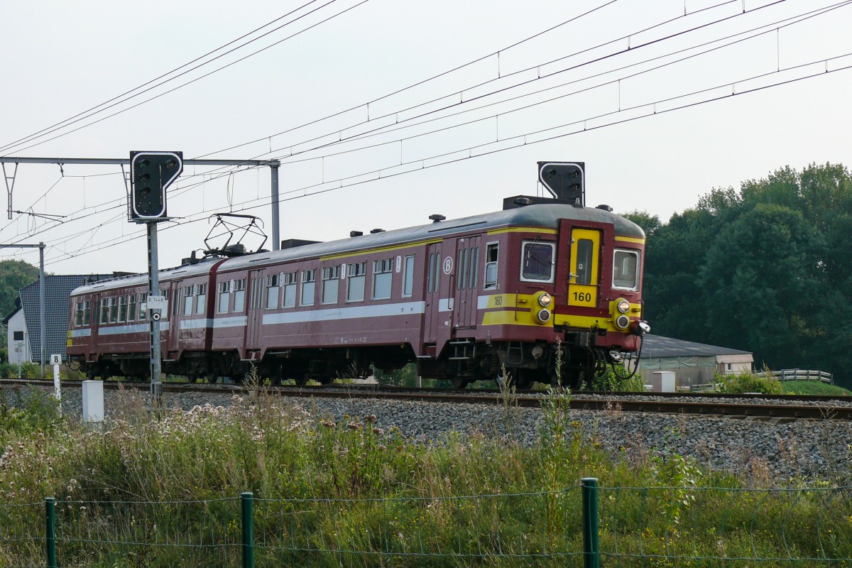 Inzwischen aus dem Verkehr gezogen, zeigt diese Aufnahme vom 11/08/2009 den Triebzug 160 der Serie AM62 auf dem Weg nach Aachen, hier zwischen Walhorn und Hergenrath.