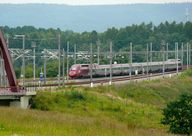 Vor dem Bau der Hochgeschwindigkeitsstrecke zwischen Lüttich und der deutschen Grenze wanden sich die Thalys und ICE noch durch die malerischen Landschaften Ostbelgiens, mancherorts sogar fast auf Tuchfühlung mit Spaziergängern, wie hier Thalys 4332 am 20/09/2009 kurz vor Astenet.