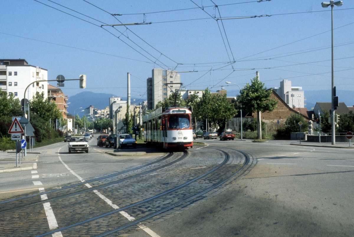 Eine schon historische Aufnahme der Haltestelle 'Betzenhauser Torplatz' an der Linie 1 nach Landwasser. Die Haltestelle wurde im Zusammenhang der Neugestaltung des Platze umgebaut. Die Bahnsteige liegen jetzt versetzt zueinander, dazwischen liegen die Gleise innerhalb einer gepflasterten Platzfläche.