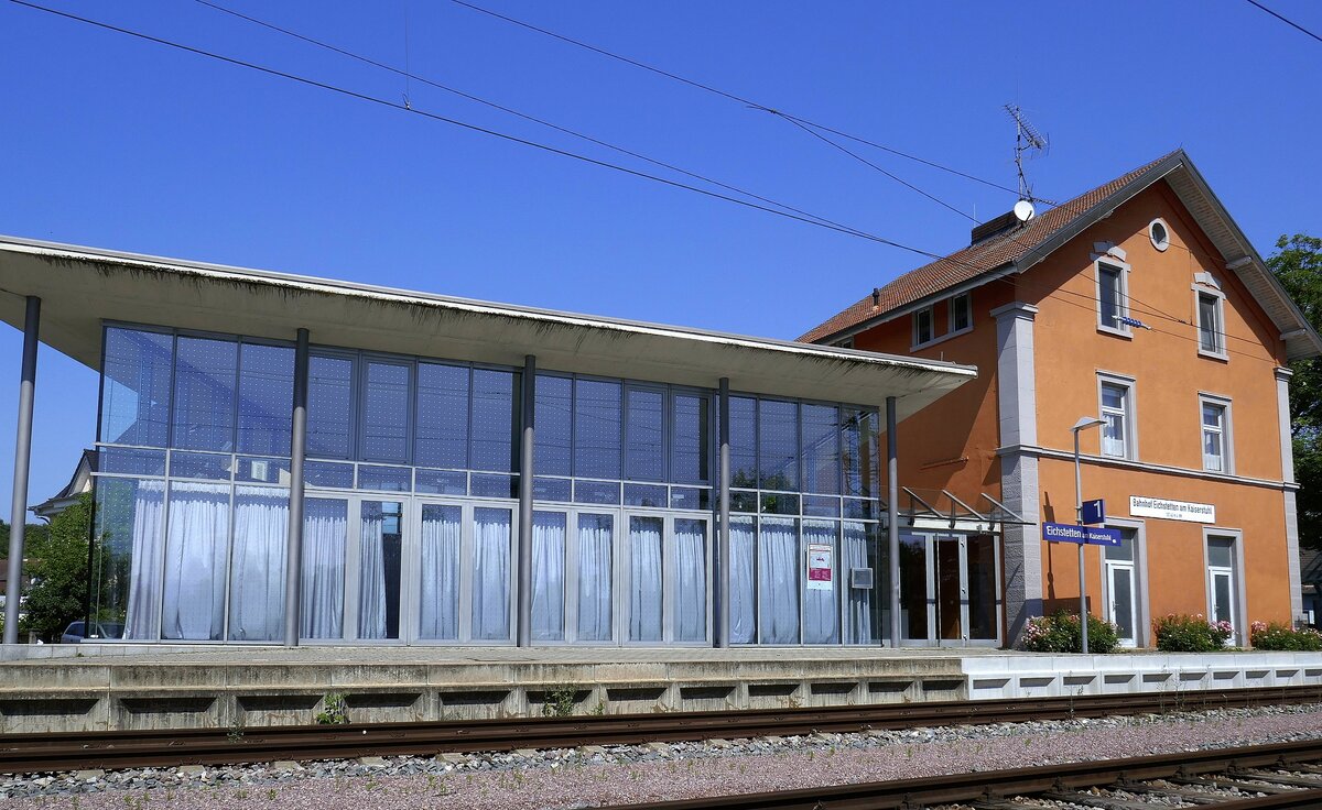 Der Uaai-Tragwagen 83 81 A-FELB 9973 321-6 für den Trafotransport wurde nach Anheben auf Stelzen am Ende des Ladegleises bei der Umspannstation Eichstetten geparkt. September 2022. Olli