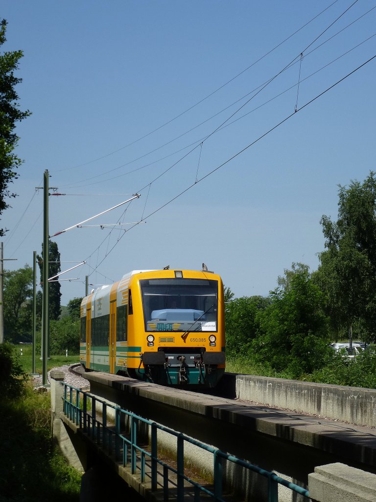 Nachschuß auf den ODEG-Dieseltriebwagen Richtung Münstertal, die zur Zeit ausgeliehenen Triebwagen sollen im September durch neue elektrische Fahrzeuge vom Typ Bombardier Talent 2 ersetzt werden, Juni 2013 rainer ullrich