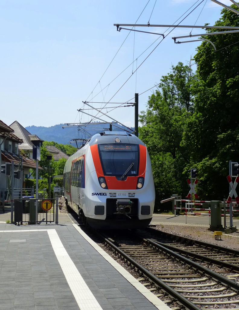 Ein normaler RS1 der SWEG war am 12.08.2013 für SWE 72521 nach Münstertal (Schwarzwald) eingeteilt und hat soeben den Bahnhof Staufen erreicht. Rick Eichner