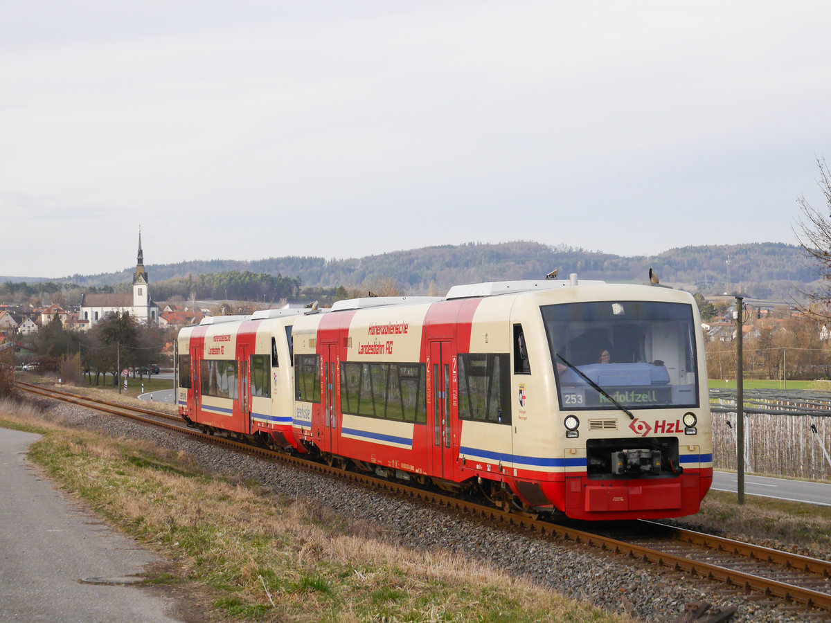 Mitte Februar waren zwei der insgesamt vier Triebwagen des HzL-,,Seehäsle“ mit einer regulären Leistung nach Radolfzell unterwegs, hier kurze Zeit nach Verlassen des Bahnhofs Wahlwies. Bahnorama