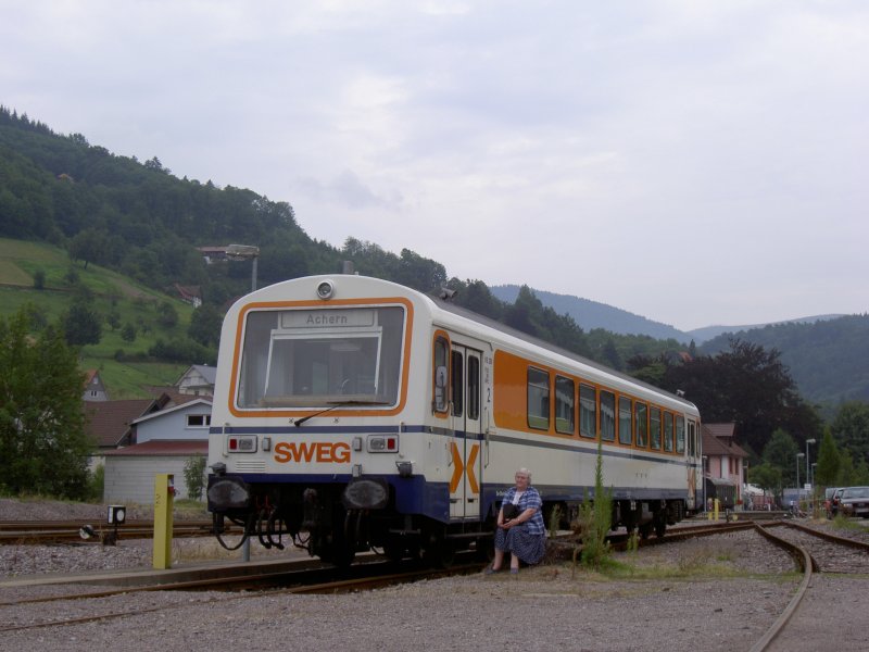 Der Ur-alt-Triebzug der SWEG steht ausrangiert im Bahnhof Ottenhöfen am 27. Juli 2008. Die Triebzüge wurden ersetzt durch die modernen, klimatisierten OSB-Triebwagen. Stefan B.