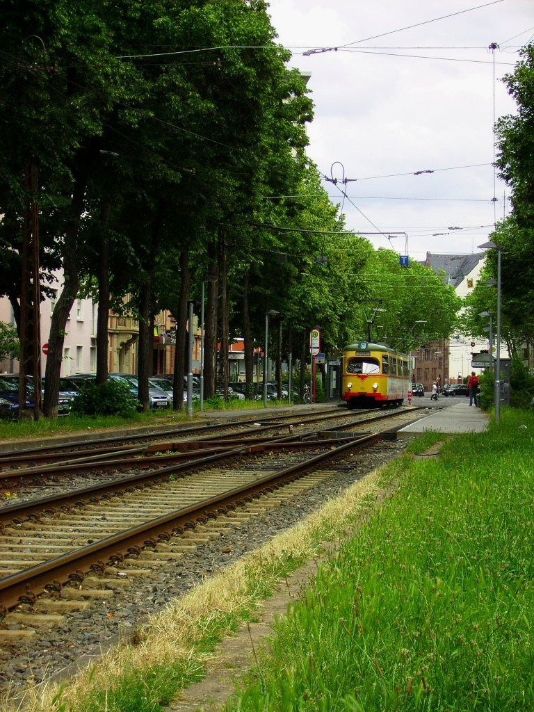 Auch wenn es nicht ersichtlich ist wo hier der zusammenhang bestehen soll, aber es gibt einen. Denn auf der Trasse der Straßenbahn verliefen, bis zur Verlegung des Karlsruher Hauptbahnhofes im Jahre 1913 (also vor 100 Jahren), hier die Zufahrtsgleise des alten Hauptbahnhofes aus Richtung Pfalz und Mannheim (über Graben-Neudorf). Zwar noch nicht hundert aber schon einige Jahre alt ist Tw 212 der VBK, welcher am 22.06.2013 die Hirschbrücke, welche noch vom ehemaligen Bahnhof zeugt, unterquert. Rick Eichner
