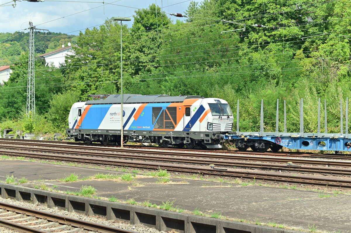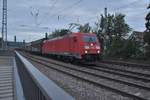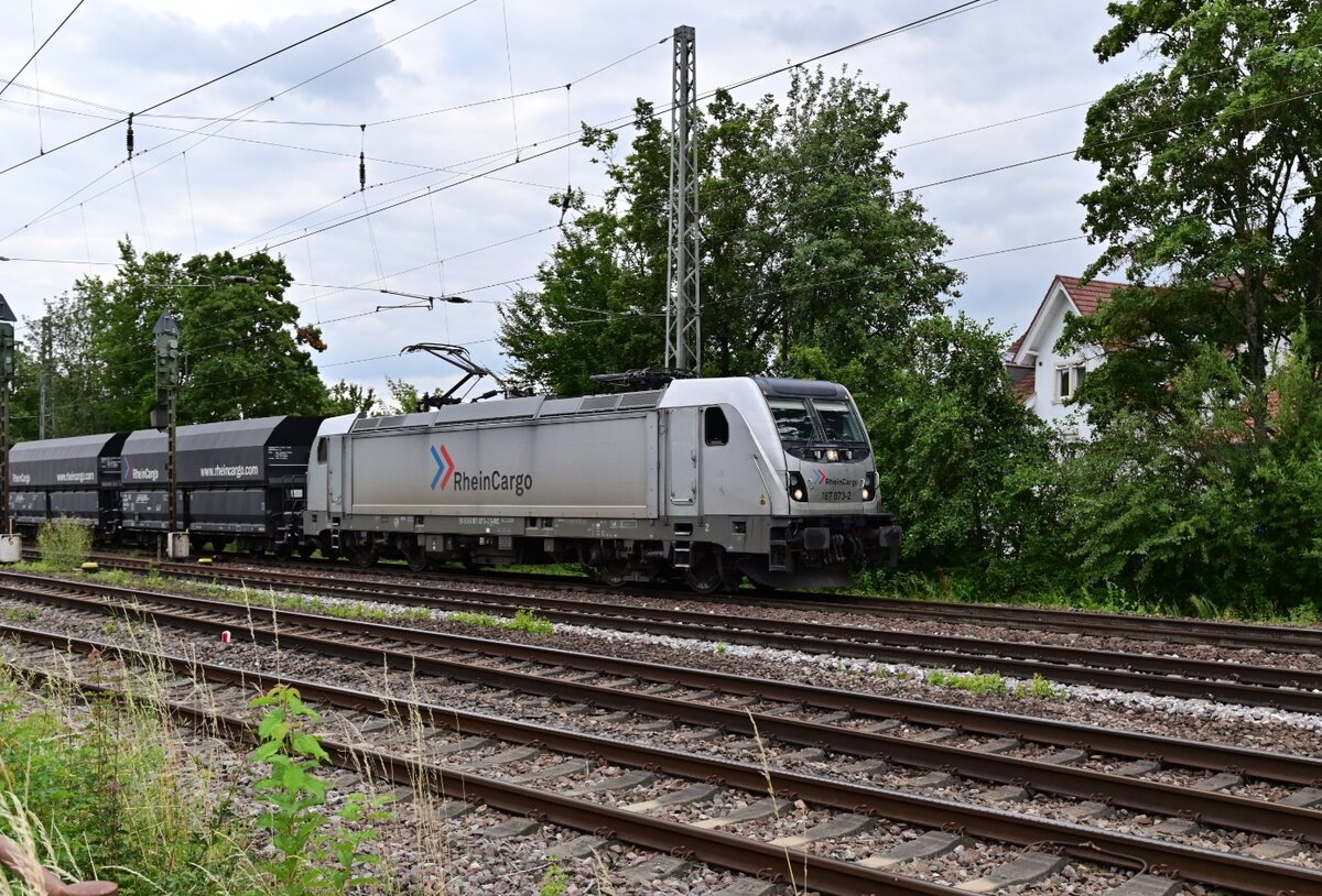 Nach einem Aufenthalt in Neckarelz fährt hier nun die RHC 187 073 mit einen Leerzug aus Gleis 1 in Richtung Heidelberg aus. Donnerstag den 7.7.2022 Andreas Strobel