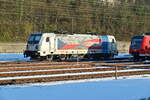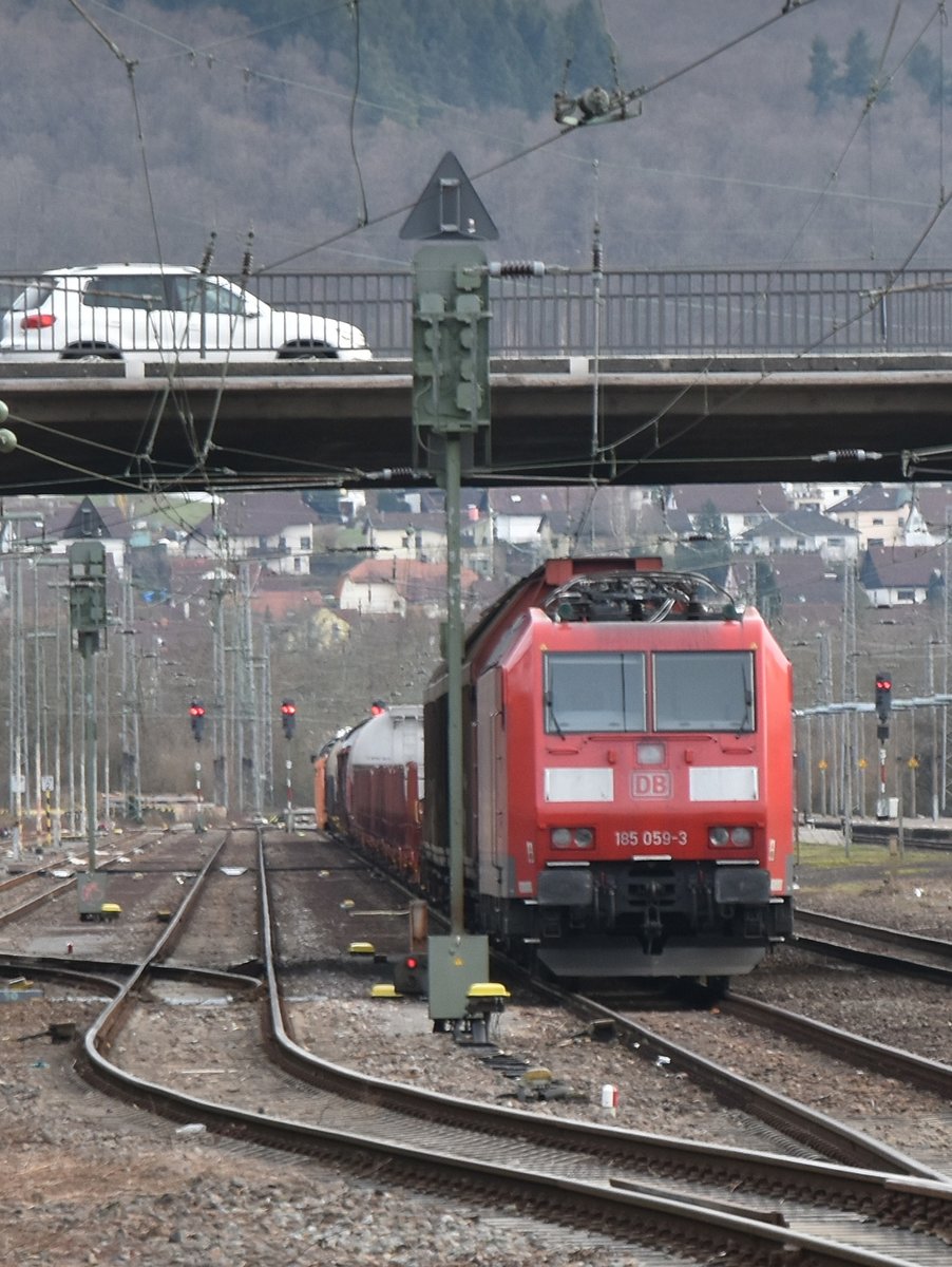 187 185 steht in Neckarelz auf Gleis 4 mit einem Frachtenzug aus Heilbronn. Anscheinend hatte der Tf seine Arbeitsstunden voll, denn gewöhnlich fährt der Zug am selben Tag noch nach Mannheim Rbf.10.12.2021 Andreas Strobel