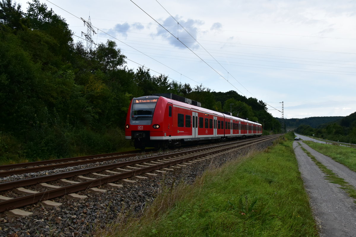 Dieser S1 Zug nach Kaiserslautern, ist hier am späten Samstagnachmittag zwischen Osterburken und kurz vor Zimmern von mir abgelichtet worden. 2.9.2017 Andreas Strobel
