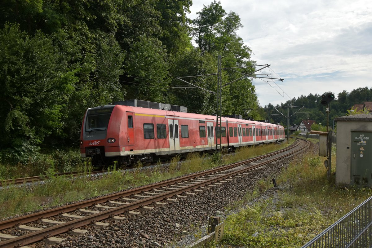 Dieser S1 Zug nach Kaiserslautern, ist hier am späten Samstagnachmittag zwischen Osterburken und kurz vor Zimmern von mir abgelichtet worden. 2.9.2017 Andreas Strobel