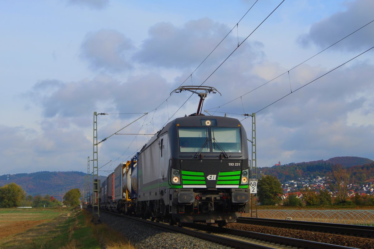 Aus Richtung Weinheim kommt die SBBC 482 028-8 mit einem Containerzug durch Heddesheim/Hirschberg in Richtung Süden gefahren.