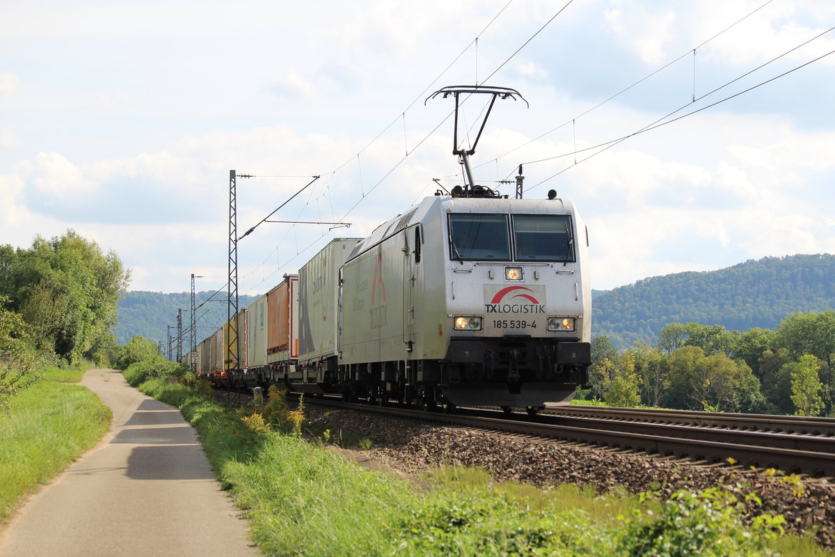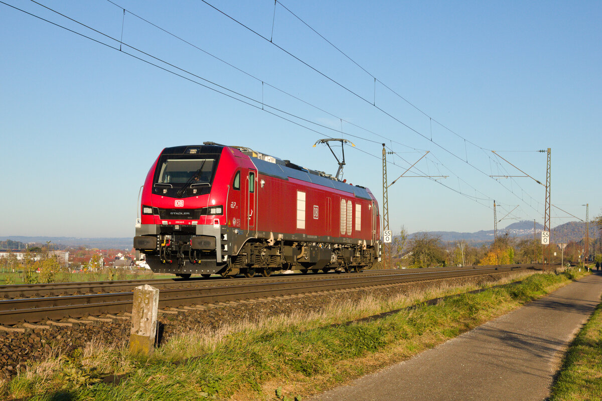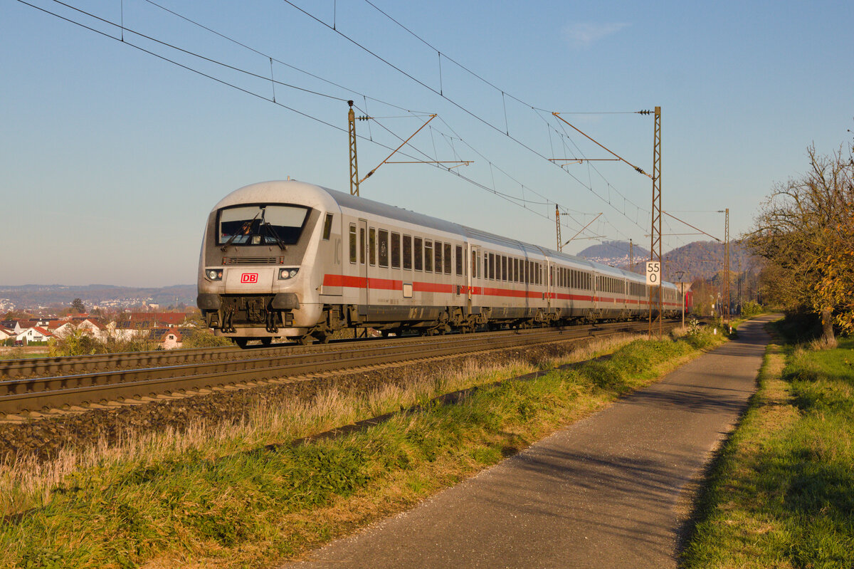 Et 5.02 A als MEX 16 Stuttgart-Ulm am 11.03.2022 bei Kuchen. Im Hintergrund ist links der Rechberg (708,1 m ü. NHN) zu sehen, daneben die Burg Staufeneck. Fluffy