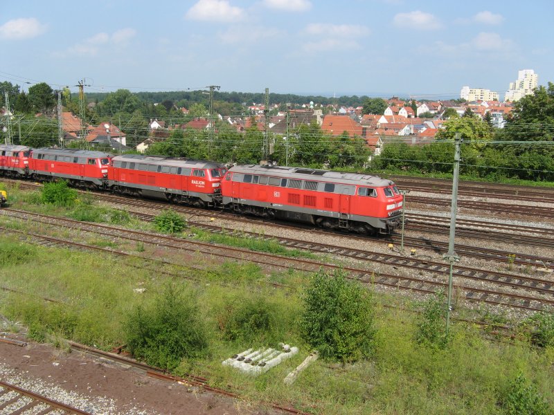 BR 203 brummt mit Kalk am Haken am 4.08.2007 durch den Bahnhof Ludwigsburg Richtung Süden.