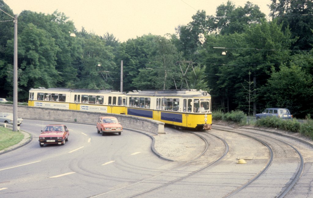 GT4 447 und ein weiterer GT4 haben Anfang der 1990er Jahre die Haltestelle Lindpaintnerstraße verlassen und fahren hinauf zum Botnanger Sattel Horst Lüdicke