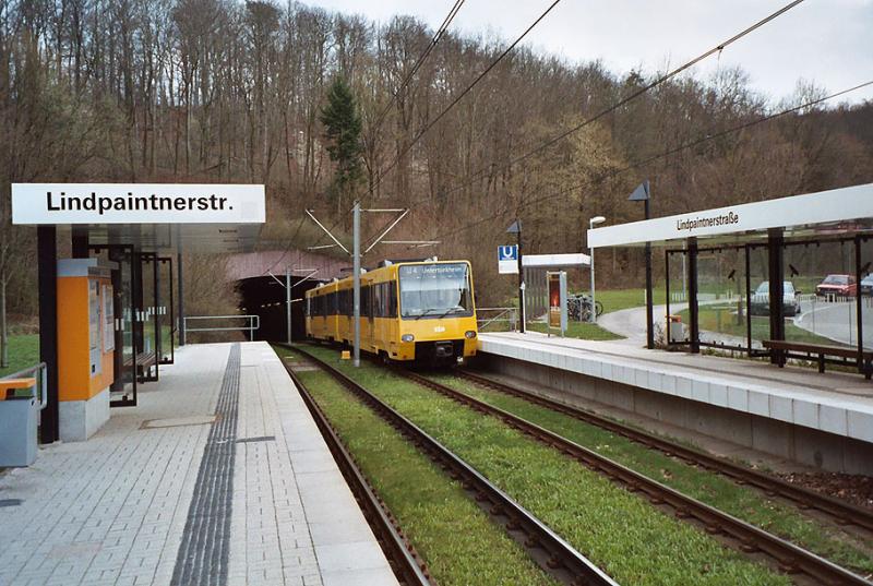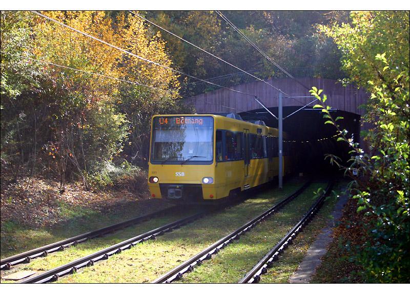 Der Tunnel im Hintergrund unterfährt den Botnanger Sattel und wurde am 14.10.1994 fertiggestellt. Zu diesem Termin wurde auch die Linie 4 auf Stadtbahnbetrieb umgestellt. Die Straßenbahn fuhr vorher auf kurvenreicher Strecke über den Höhenzug.