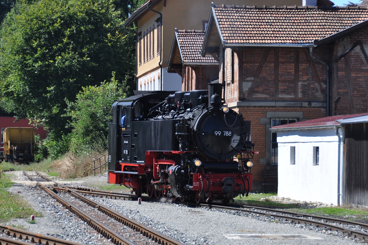 Die 1899 von der Maschinenfabrik Esslingen gebaute 99 633 beim Bahnhofsfest der Öchsle Museumsschmalspurbahn am 10.09.2017 in Ochsenhausen. Jürgen Vos