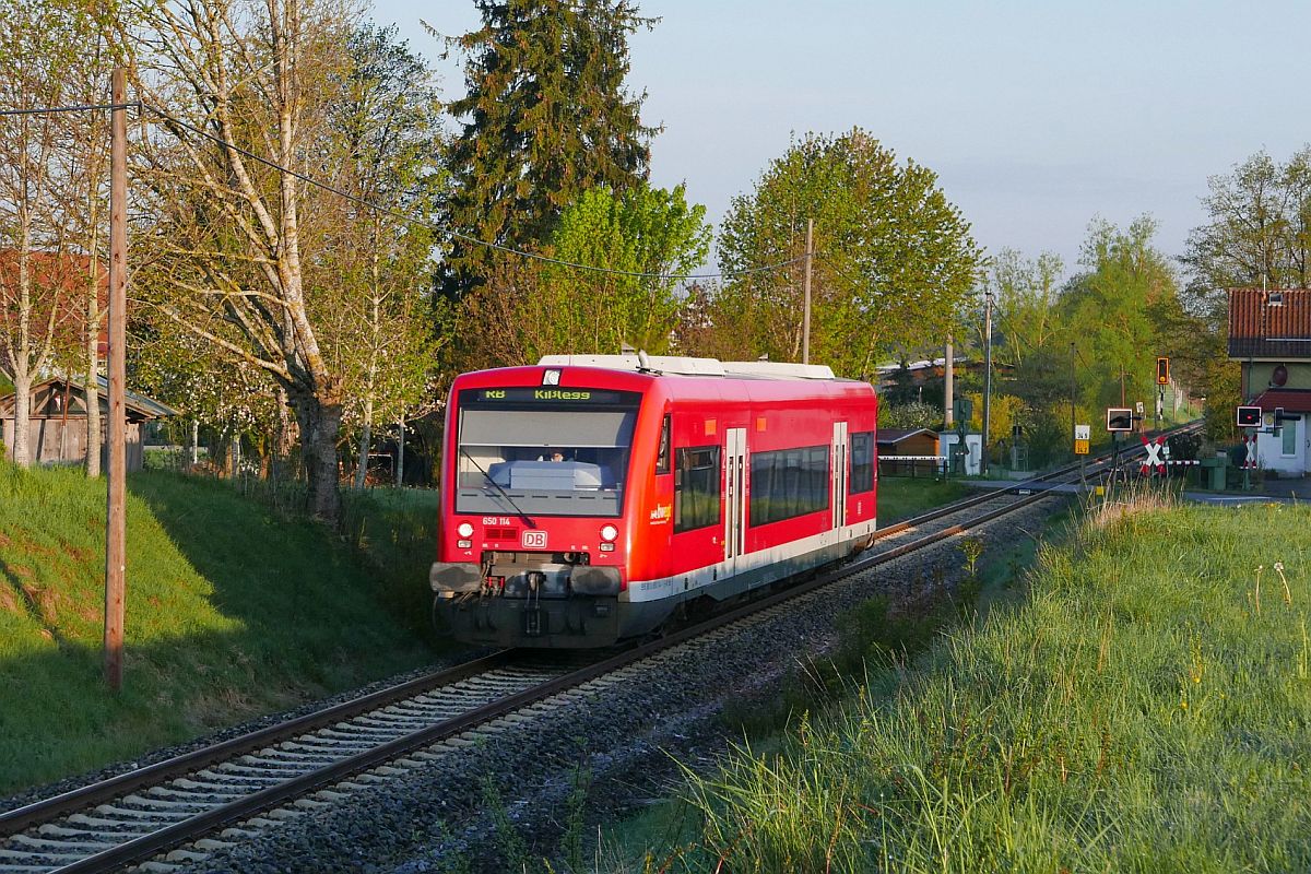 Bei Mennisweiler, kurz vor Beginn der Gefällstrecke nach Roßberg, befindet sich der in Bad Wurzach gestartet 650 319 am 06.05.2018 als RB 22897 auf der Fahrt nach Aulendorf. Jürgen Vos