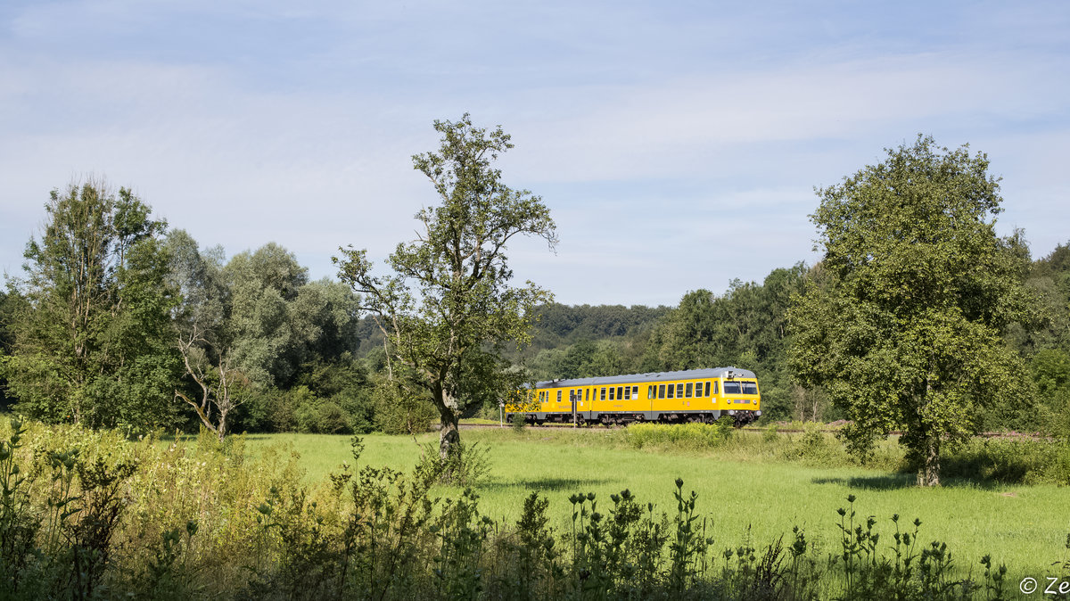 Ein Limez (Lichtraummesszug) auf einer Überführungsfahrt zwischen Friedrichshafen und Ulm. Die Messeinrichtung war leider am Schluss des Zuges, als er im August 2016 die Südbahn befuhr. M.Zerrinius