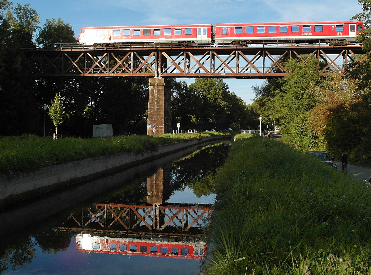 RB 22860 von Aulendorf über Kißlegg, Wangen, Hergatz und Lindau nach Friedrichshafen überquert am 12.09.2015 eine Stahlfachwerkbrücke in Wangen im Allgäu. Jürgen Vos