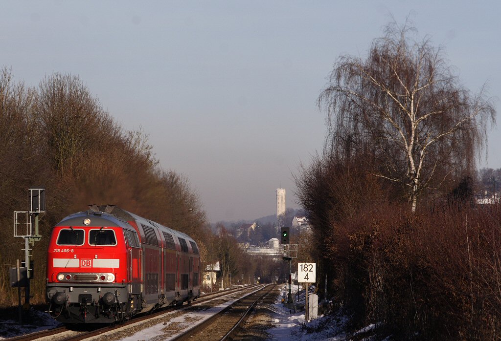 "Unsr neie Schdahrlogg" ("kbs753" im Südbahnforum) ist die 218 496-8, die vor ein paar Tagen mit neuem Anstrich aus dem Norden zurückgekommen ist, Oberzell, 05.01.11 Maximilian Schön