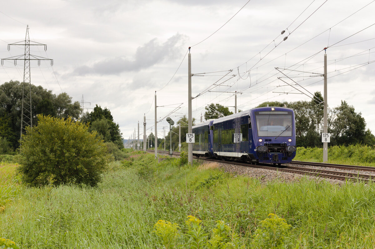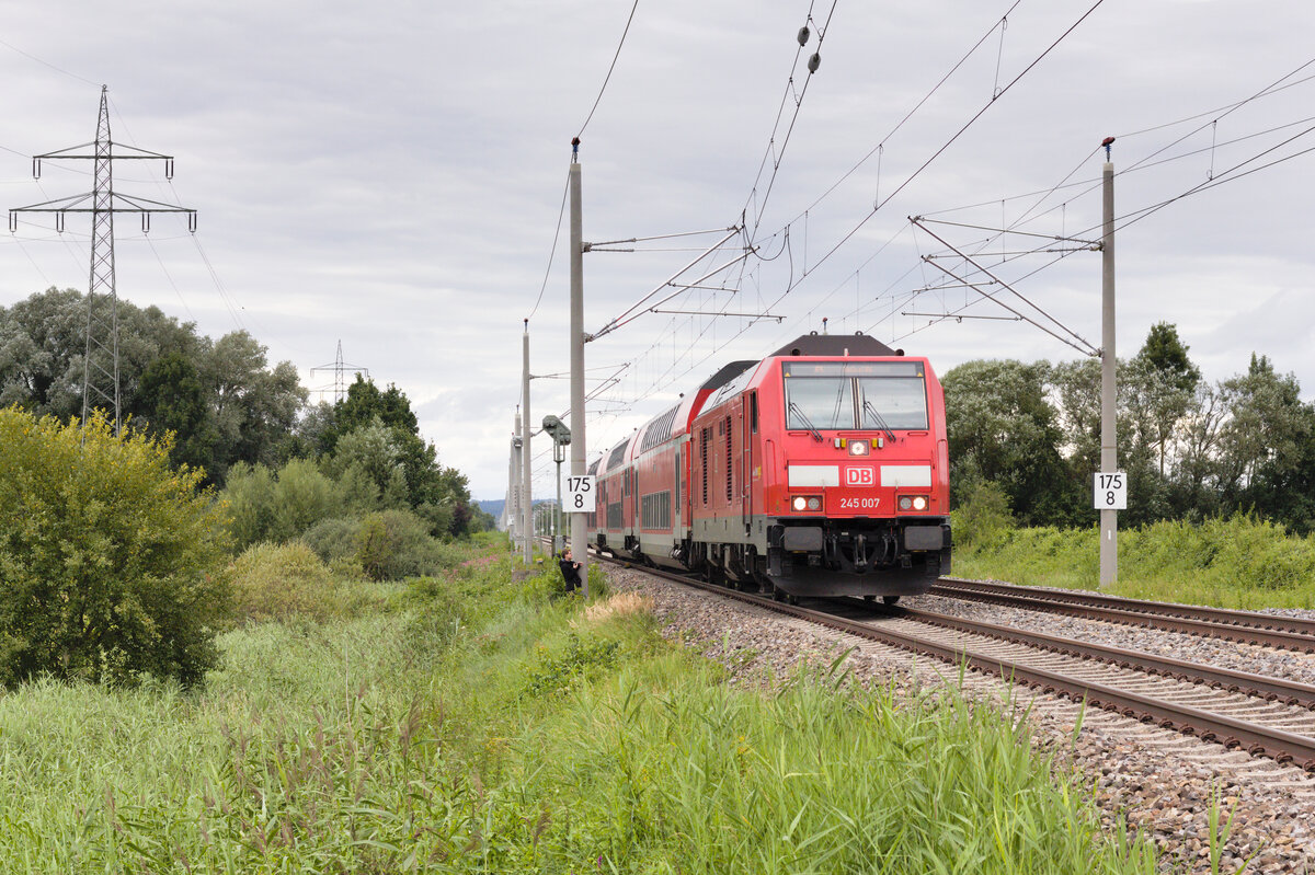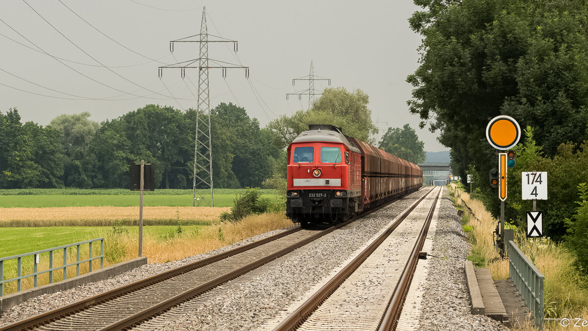 232 527-2 am Kieszug Roßberg-Friedrichshafen (-Awanst. Marschall) in Richtung Friedrichshafen am 03.07.2015 kurz vor dem Hp Weingarten/Berg. M.Zerrinius