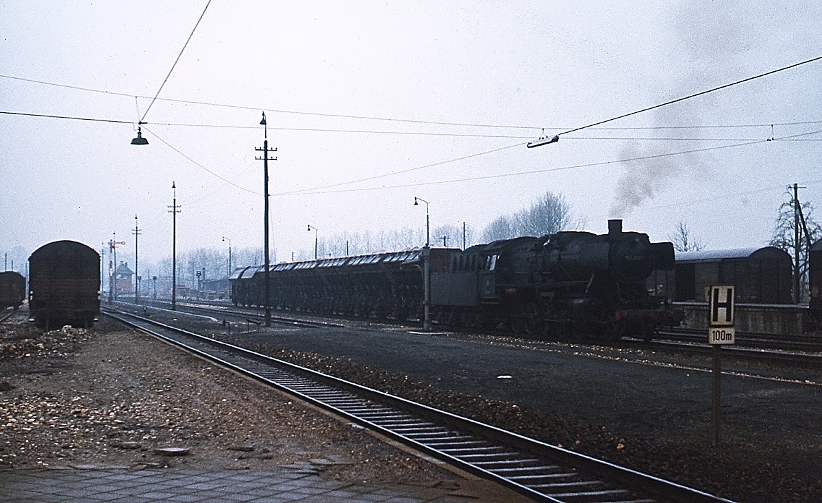 Zum Vergleich mit Ollis aktuellen Aufnahmen von der Ablachtalbahn zwei Aufnahmen vom Bahnhof Mengen, die an einem Dezembermorgen 1975 entstanden: Bei Schneegriesel steht die Ulmer 052 203-2 abfahrbereit vor einem Güterzug nach Sigmaringendorf. Neben einigen Leistungen vor allem zwischen Ulm und Ehingen/Munderkingen gehörte diese Übergabe zu den letzten Leistungen der Ulmer 50er, etwa einen Monat später endete der planmäßige Dampflokeinsatz. Horst Lüdicke