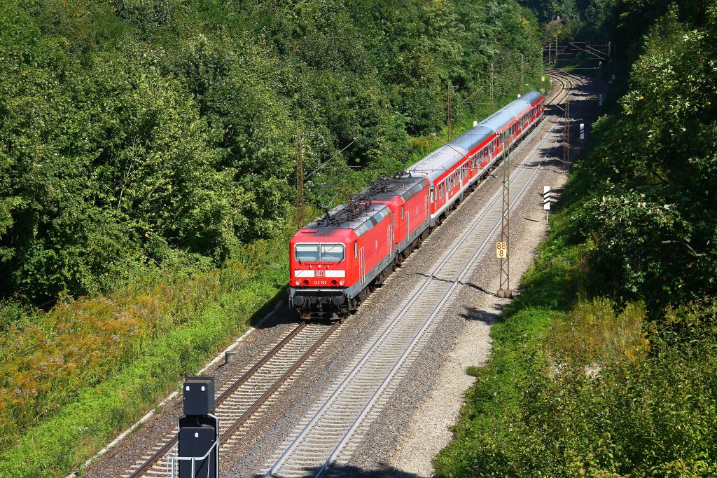 143 109 & ??? rollen durch den Einschnitt bei Böfingen talwärts, Strecke Ulm - Stuttgart - 18/09/2012