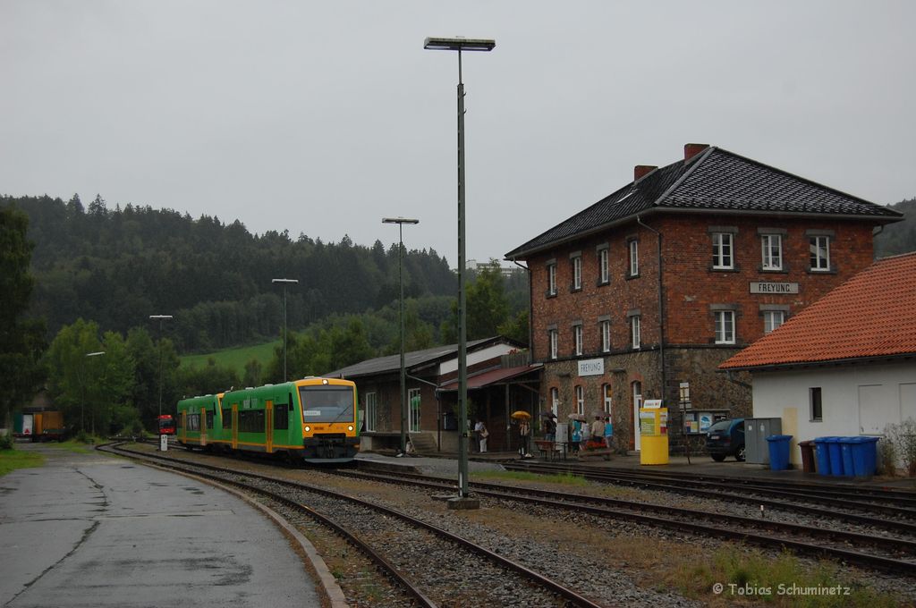 VT 25 + VT 24 der Waldbahn am 07.08.2011 im Bahnhof Freyung auf der wiedereröffneten Ilztalbahn. Ich möchte dem Verein ein Lob aussprechen die Strecke wieder in Betrieb genommen zu haben. Tobias Schuminetz, Hirschau