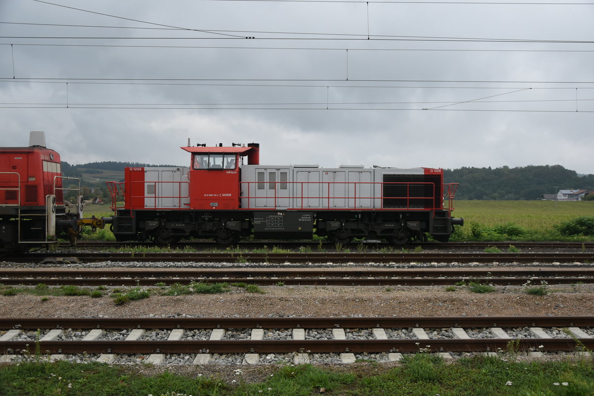 In Neustadt an der Donau stand am Sonntag den 2.9.2018 eine mir unbekannte Diesellok mit der Kennung V118. Leider konnte ich die NVR-NR  nicht erkennen und rätsel mal das es sich um die HzL Kraus Maffei M 1200 BB handelt.
