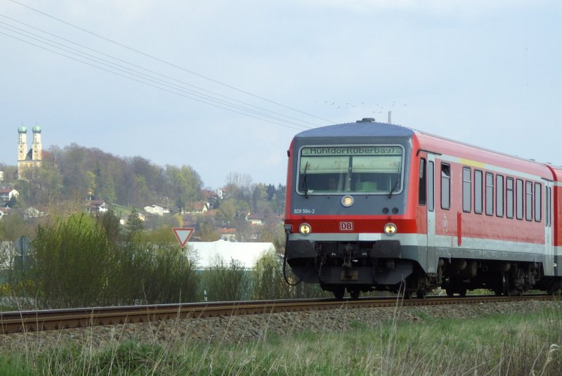 628 584 als RB von Passau nach Mühldorf am 13.04.2008 bei der Ausfahrt aus Pfarrkirchen.
