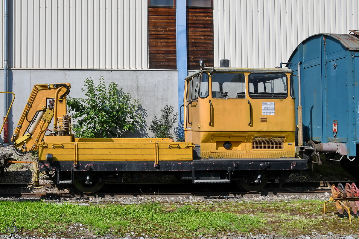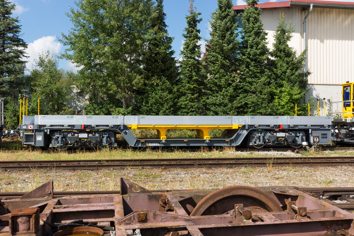 Der neue Flachwagen steht kurz vor der Auslieferung an die Kölner Verkehrsbetriebe (KVB). Gebaut wurde er von der Firma Robel in Freilassing. Zusammen mit SKL 6311, 6312 und 6313 absolvierte er zwei Wochen lang umfangreiche Testfahrten auf der Strecke Bad Endorf - Obing. Die Anwohner dieser Museumsbahn sind nicht an Zugverkehr über die Woche gewöhnt. Daher wurden die Zugfahrten im Verkehrsfunk erwähnt und um besondere Vorsicht an den Bahnübergängen gebeten. Bahnhof Obing, 07.08.2016 Ingo Konrad Müller