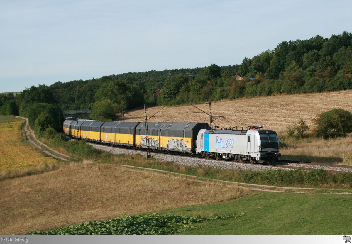 Ein Vectron (BR 193)von Railpool, angemietet durch Ruhrtalbahn Cargo, ist mit einem Autotransportzug von ARS Altmann am 26. August 2015 bei Laaber in Fhrtrichtung Regensburg unterwegs. Ulrich Slovig