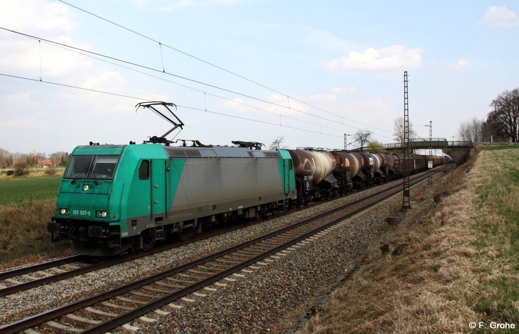 Railion DB Logistics 294 864-4 vor Müllzug aus Straubing, KBS 880 Passau - Regensburg, fotografiert bei Taimering am 03.04.2012 --> rechts sind noch Reste der Verladeanlagen des ehemaligen Bahnhofes Taimering zu erkennen