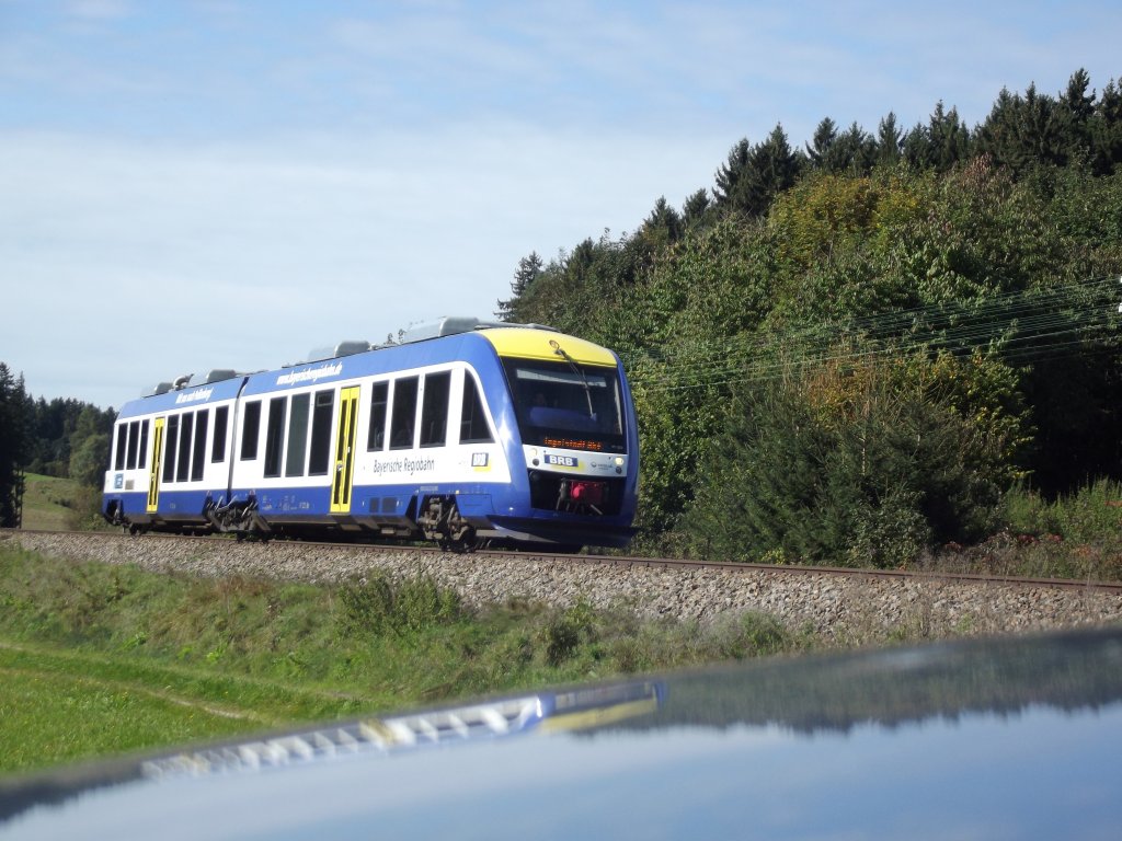VT223 an einem schönen Oktobertag auf der Fahrt nach Ingolstadt Hbf (zw. Friedberg und Dasing). (03.10.2012)