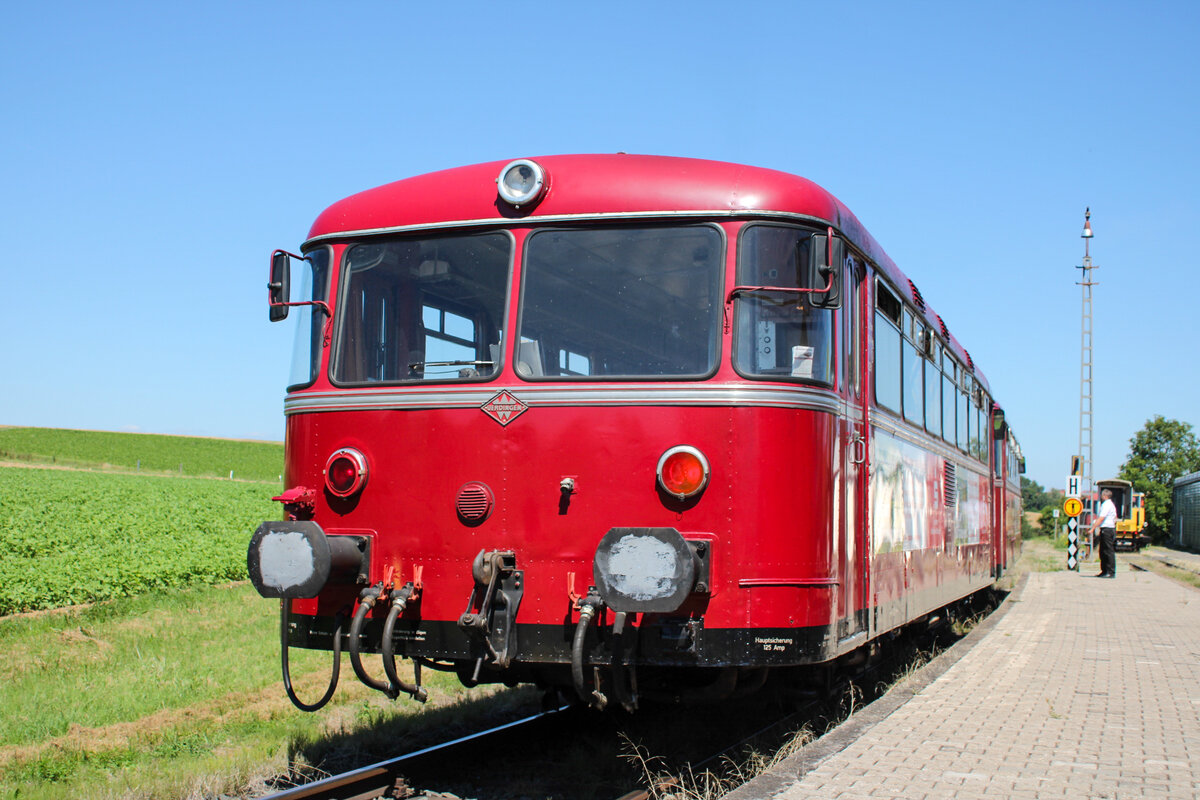 Am 11. August 2024 ging es zur Mainschleifenbahn. Zusammen mit drei Freunden/Hobbykollegen machte ich mich auf den Weg nach Prosselsheim. Um 14:20 Uhr klicken dann die Auslöser als 796 702 und 996 726 als MSB 04 nach Seligenstadt MSB Prosselsheim verlassen. Leonhard Groß