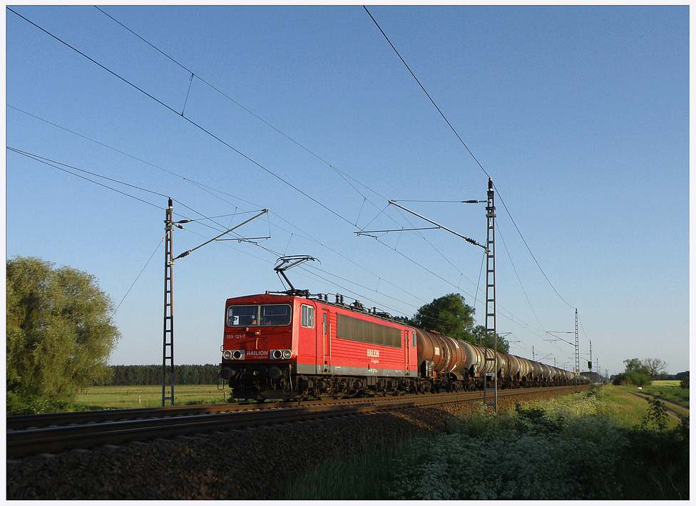 Kesselwagenzug bei Wehnsdorf an der Strecke Berlin-Dresden.