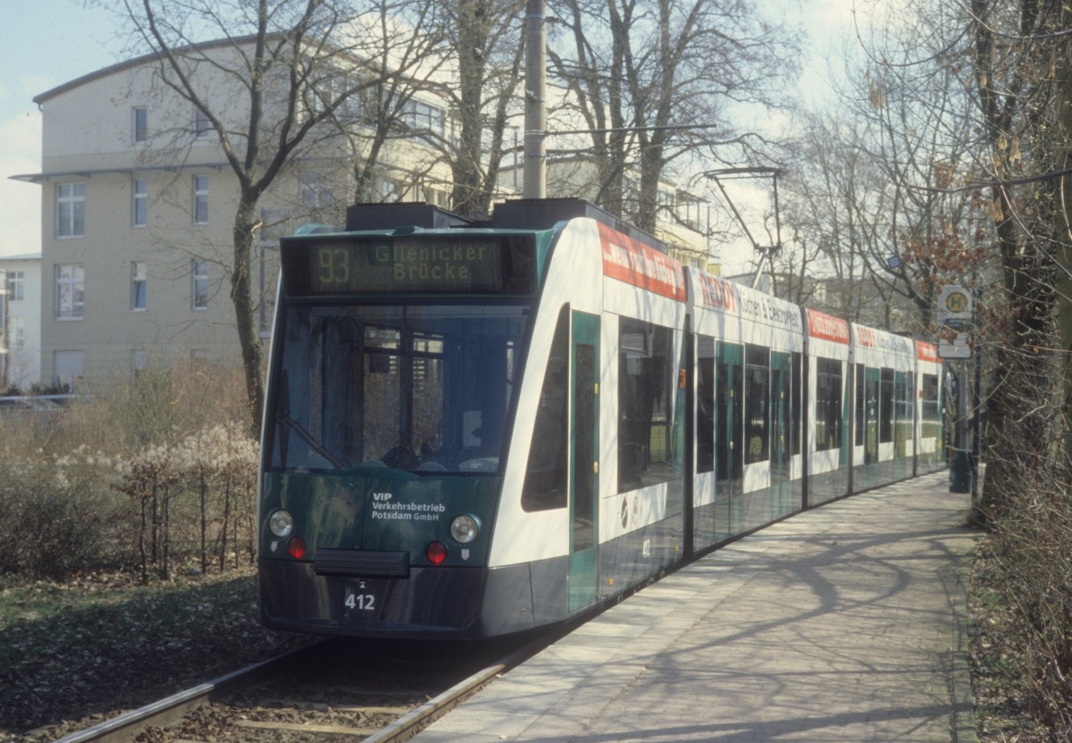 Potsdam VIP SL 93 (Combino 412) (Dreieckgleis nahe der) Glienicker Brücke am 9. April 2006.