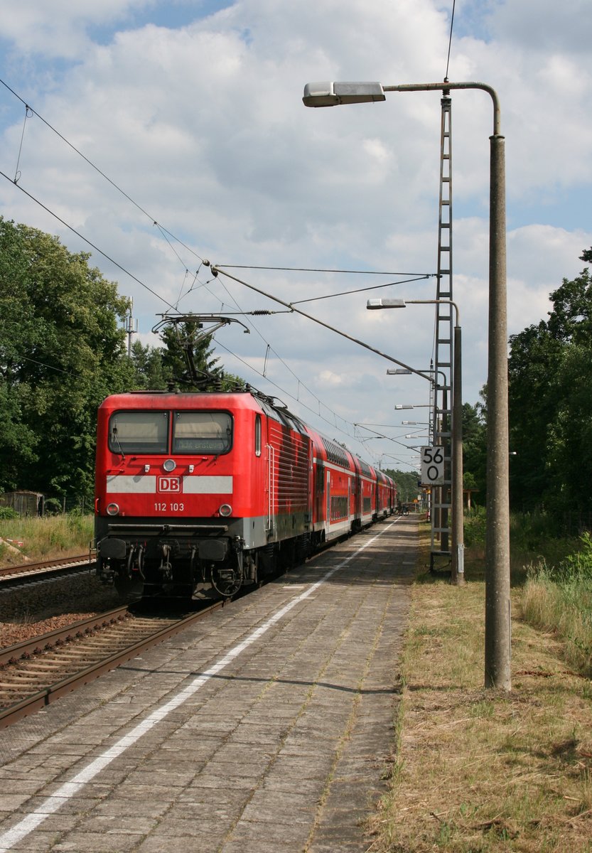 112 182 mit RE 18424 (Luckau-Uckro–Wünsdorf-Waldstadt[–Stralsund]) am 25.06.2016 in Klasdorf