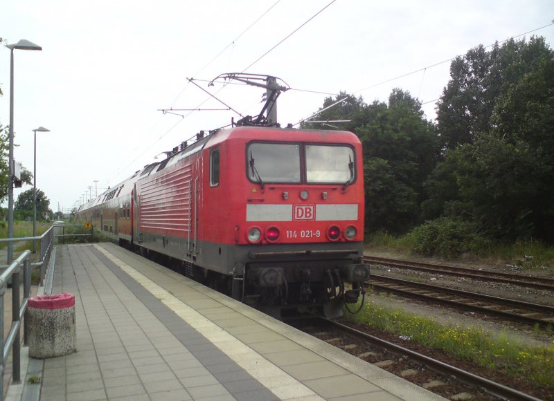Hier der RE3 kommend aus Angermünde. Dieser Zug endet hier und fährt als RE3 zurück nach Angermünde. Der nächste Halt ist Schwedt/Oder Mitte. Dieser Zug stand am 6.7.2009 in Schwedt/Oder Hbf. Alexander