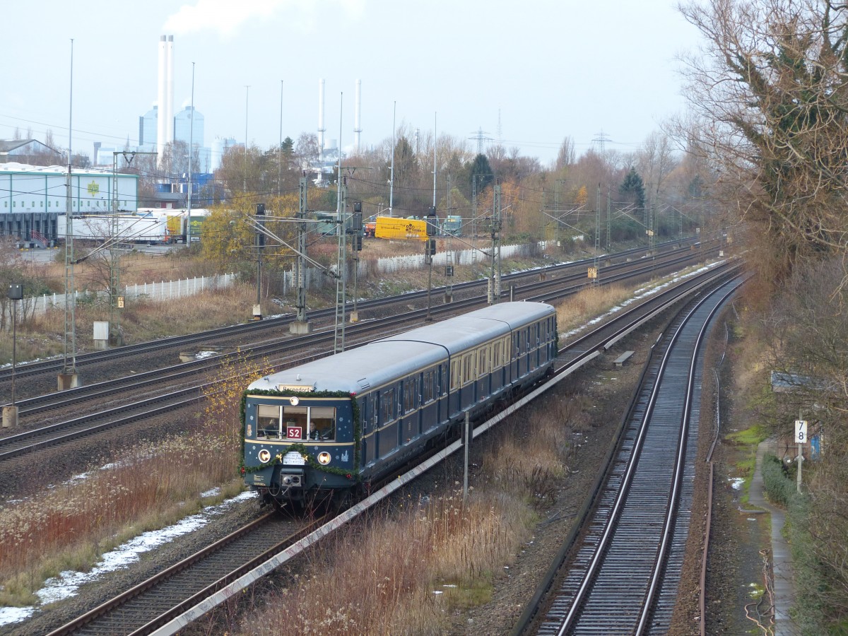 Weihnachtsstimmung in Billwerder-Moorfleet: die historische S-Bahn ET 171 082 auf ihrer Fahrt in Richtung Bergedorf erreicht in Kürze den Bahnhof. Die Mitfahrt ist zum normalen HVV-Tarif möglich, auch an den kommenden Samstagen vor Weihnachten ist die Bahn unterwegs. 7.12.2013 Thomas Wendt