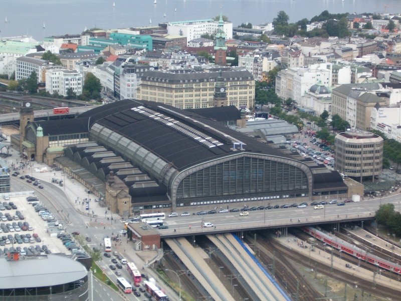 Mein Urlaub in Norddeutschland bot einige  herausragende  Erlebnisse, so auch die Fahrt mit dem Fesselballon südlich des Hamburger Hauptbahnhofes. Ein wunderbarer Blick nicht nur auf den Hauptbahnhof. (09.09.2006) (siehe auch www.tippner-home.de)